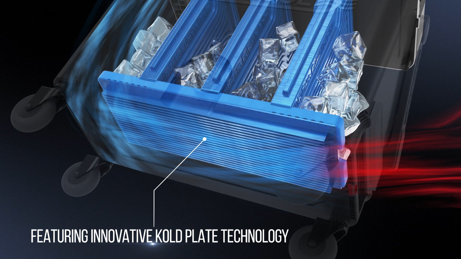 The high tech and sleek looking SoloKool Model V is an innovative state of the art personal A/C device that also doubles as a portable cooler to keep your beverages cold. The SoloKool Model V is NOT a swamp cooler. Our innovative & efficient proprietary Kold Plate™ technology utilizes ice to passively chill an aluminum Kold Plate™ with a series of heat exchanging aluminum fins beneath. The incoming hot air is then exchanged to COLD DRY AIR when passing through the chilled aluminum fins.