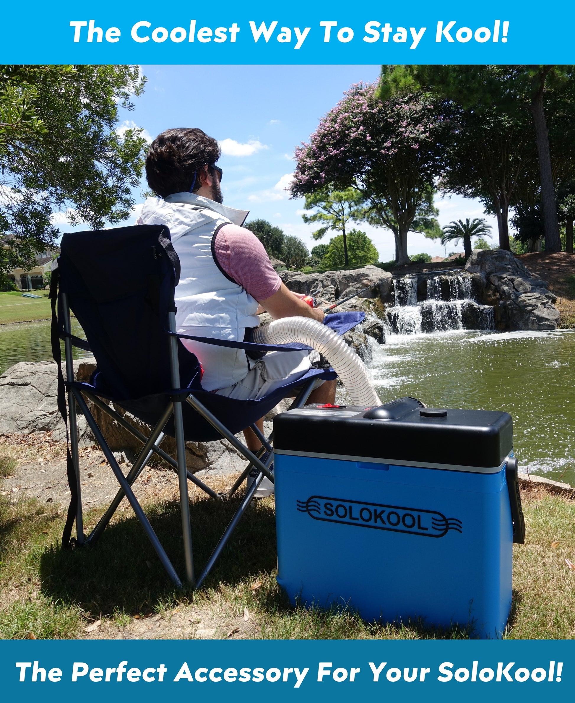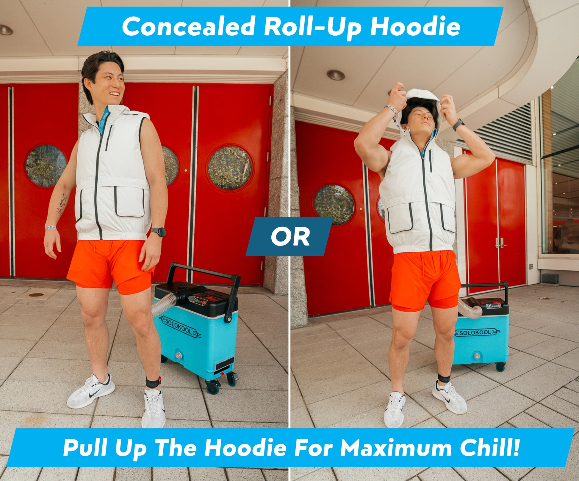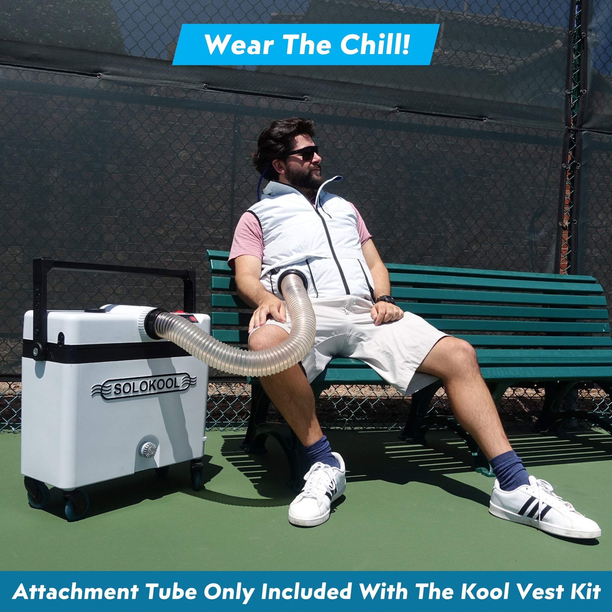 Stay cool and comfortable even in extreme heat with our proprietary Kool Vest, designed to work seamlessly with the SoloKool Model V and V-ibe portable A/C units. Our innovative Kool Vest continuously circulates chilled air directly from the SoloKool unit, providing instant relief from the sweltering summer heat.